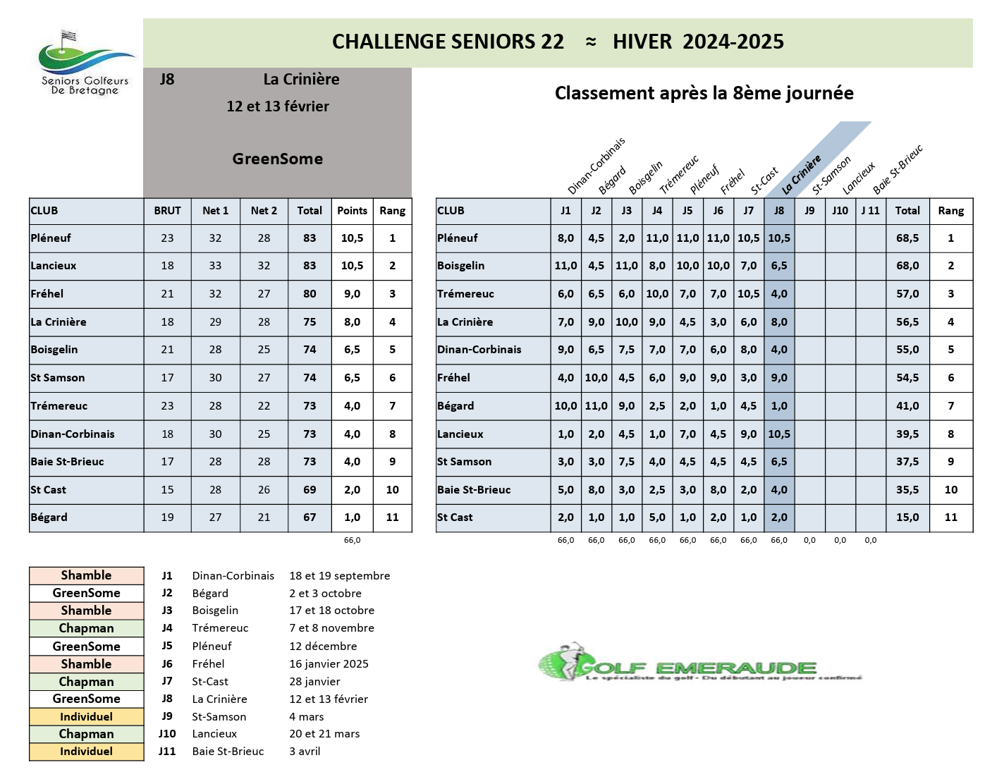 Golf EMERAUDE - 8ème Compétition Séniors